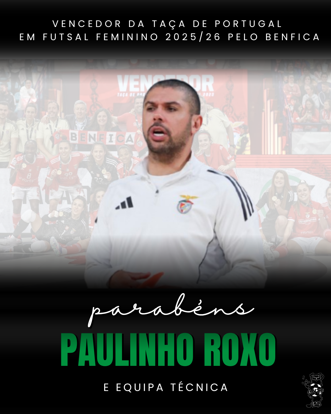 A Associação Nacional de Treinadores de Futebol felicita o treinador Paulinho Roxo e toda a sua equipa técnica pela conquista da Taça de Portugal de Futsal Feminino, ao serviço do Sport Lisboa e Benfica.
